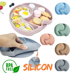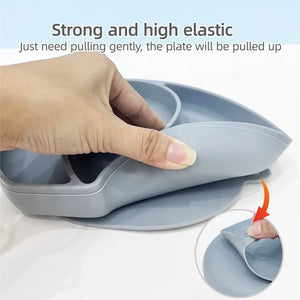 Une assiette en silicone alimentaire avec base à ventouse, idéale pour les premiers repas de bébé 💖